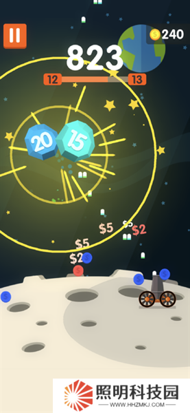 2、關(guān)卡之中你需要移動(dòng)自己的跑車(chē)攻擊下落的各種石塊,石塊上面的數(shù)字就是擊碎所需要的攻擊次數(shù),玩家們應(yīng)該根據(jù)實(shí)際的情況來(lái)選擇合適的石塊進(jìn)行攻擊。