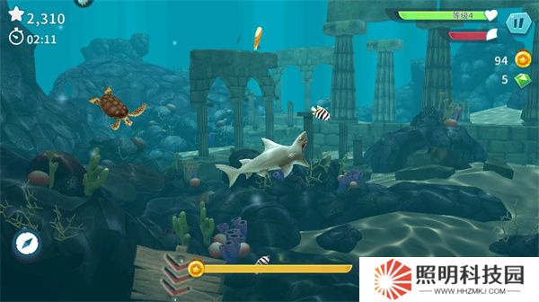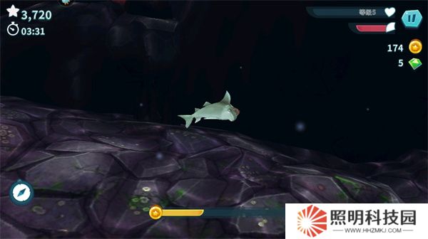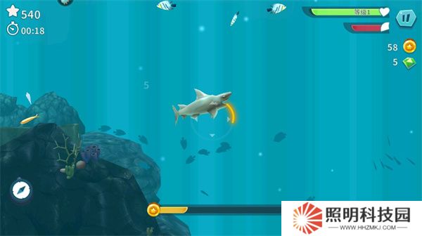 4、玩家們可以按住屏幕可以加速鯊魚進行捕食。