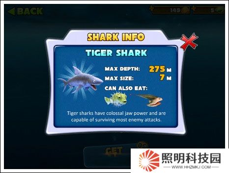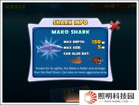 這條鯊魚的速度和下潛深度有所提高,能多吃兩種魚類,但需要25顆鉆石,性價(jià)比不高。