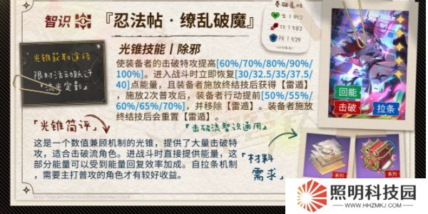 限定5星光錐「忍法帖?繚亂破魔(智識)」,可通過光錐活動躍遷「流光定影」獲得。