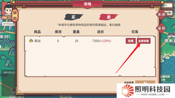 13、來到新的城市之后點(diǎn)擊城市界面的市場,再點(diǎn)擊其中的【賣】。