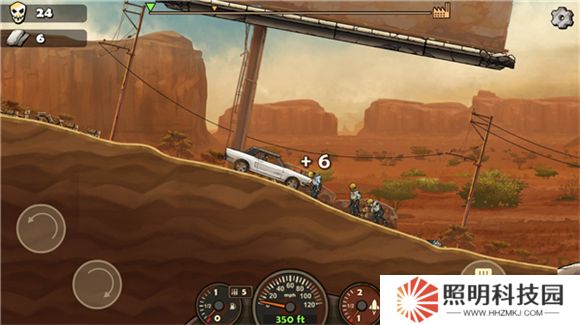 3、進入關卡后,使用左邊的控制按鈕來操作車輛的前翻和后翹,右邊的油門按鈕可以讓你加速前進。