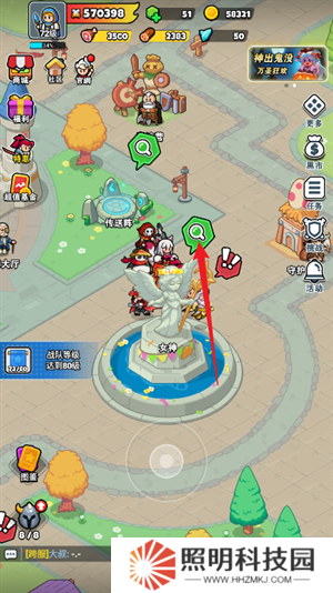 1、進入到城鎮中后玩家們控制角色靠近女神像點擊放大鏡圖標打開。