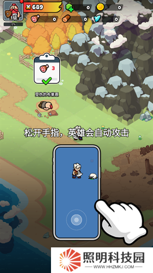 3、將影響控制移動到怪物旁邊松開手指,英雄就會自動攻擊。