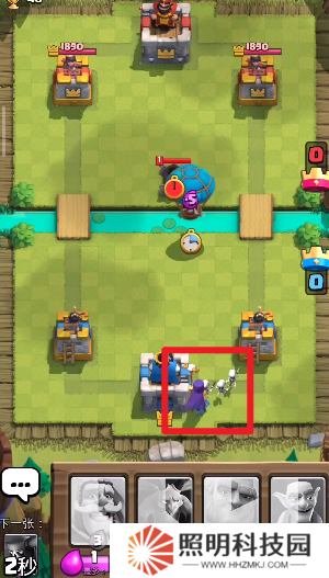 1、進入對戰(zhàn)地圖之后,雙方玩家們會各自擁有一個堡壘以及炮塔,你需要在這種情況之下召喚自己的**來進行戰(zhàn)斗。