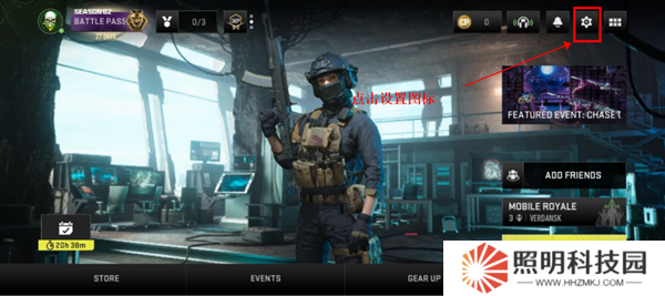 1.打開手游進入游戲主界面后,玩家們點擊右上角設置圖標。