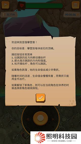 1、玩家們在本站下載安裝完成后進入游戲,點擊右上角的按鈕就能夠開始進行登山的挑戰。