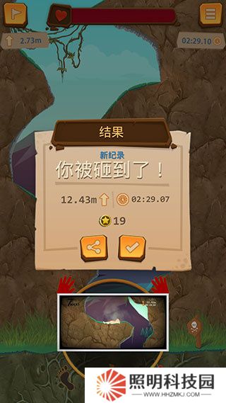 6、游戲會在玩家成功到達山頂或被障礙物擊中無法繼續時【結束】。
