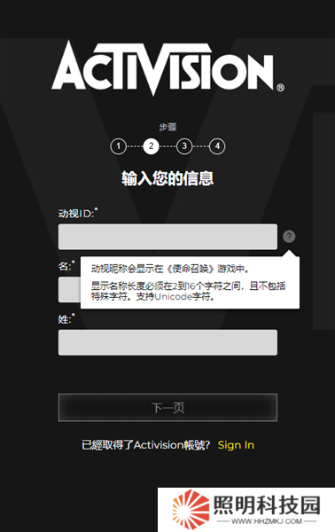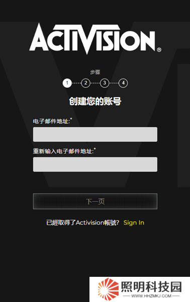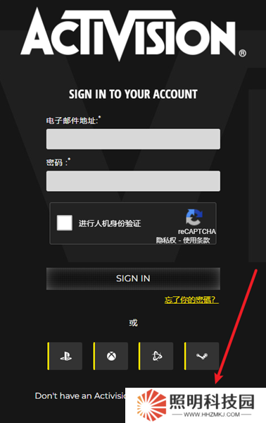 1、點擊使命召喚戰區官網的入口鏈接進入動視的網站,打開動視賬號的登錄界面,點擊最下方的建立一個賬號。