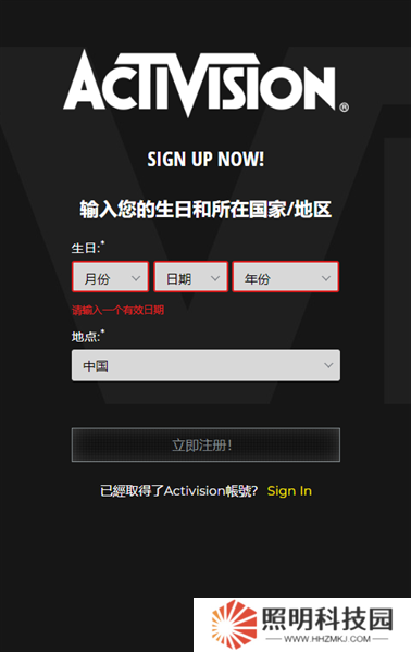 2、進入到注冊界面之后,你需要輸入自己的生日以及所在國家/地區,然后點擊立即注冊。