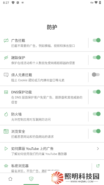 在防護(hù)方面還是很全面的,基本很多都可以限制廣告功能,包括廣告跟蹤等等,