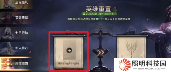 3、進入英雄重置的界面之后,點擊加號就能夠選擇自己的英雄進行重置了。