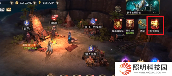 1、玩家們進入游戲之后,首先需要點擊右上角的啟程豪禮。