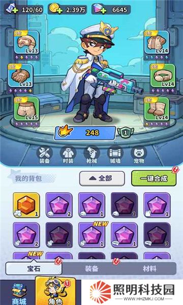 1、游戲的戰斗過程中采用了傳統的合成機制,玩家需要將相同等級的武器進行堆疊合成,從而提升武器的威力。
