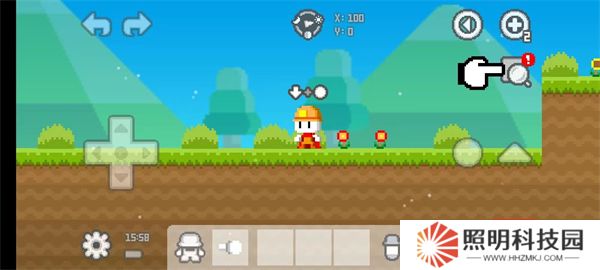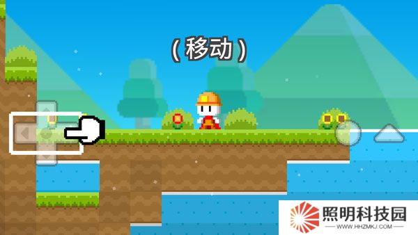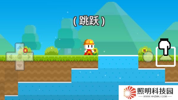 2、點擊右下角的三角按鈕,可以讓角色在場景當中進行跳躍。