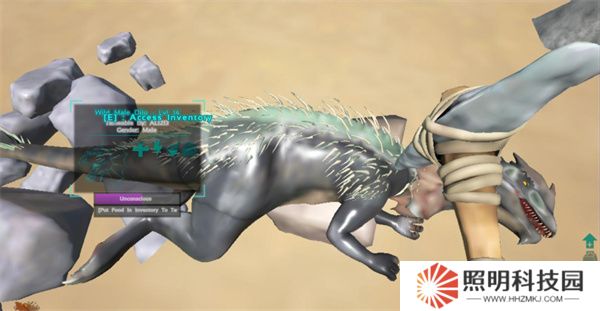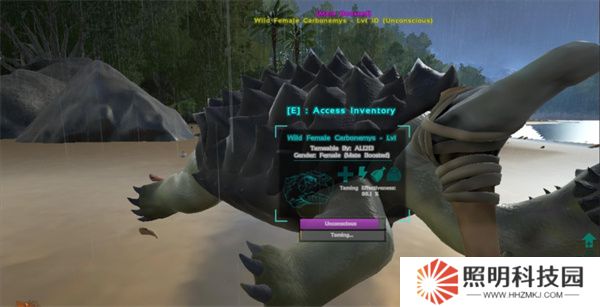 3、接下來找到自己想要馴服的恐龍,然后使用拳頭,棒子這種鈍器來不斷攻擊恐龍。