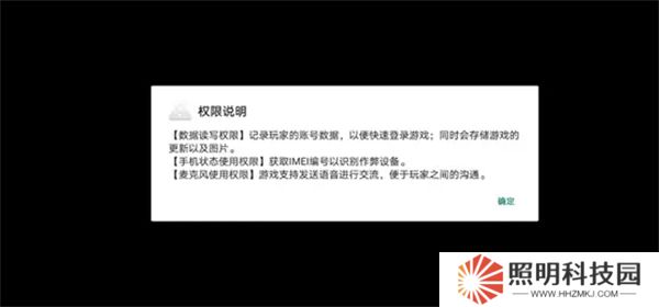 1、玩家們進(jìn)入游戲之后,首先需要同意彈窗內(nèi)部說(shuō)明的權(quán)限。