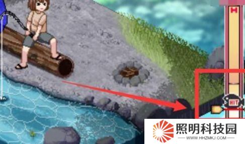 4、魚上鉤之后,玩家使用左鍵來控制能量條中的拉桿,讓拉桿跟著魚跑,如下圖所示: