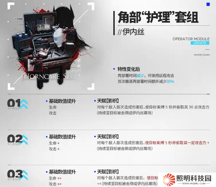 升級效果:對每個敵人首次造成傷害后,使目標束縛5秒并偷取一定攻擊力++(持續得到目標被擊倒或者是伊內絲離場)