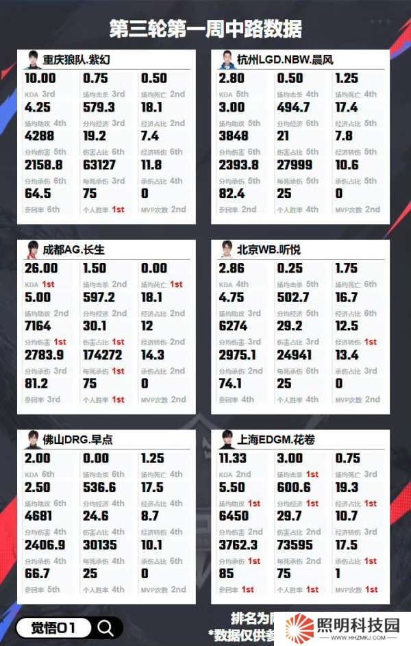 第三輪各位置數據:歸期十項第一,大帥八項數據第一,花卷九項數據第一