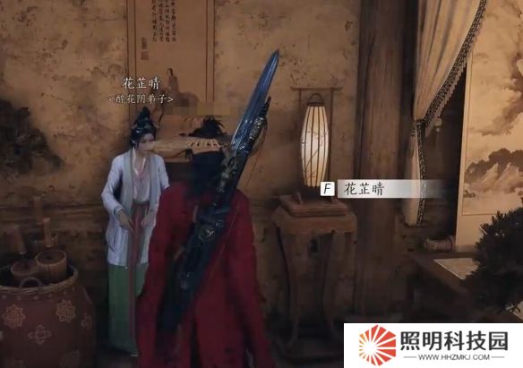 2、拿到后往回走來到該位置進(jìn)入房子,在里面找到NPC【花芷晴】;