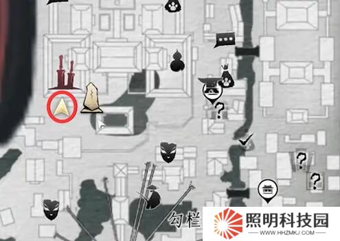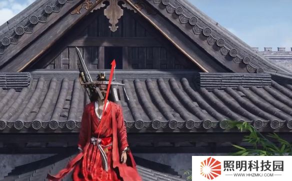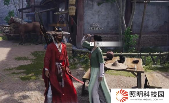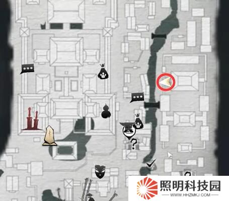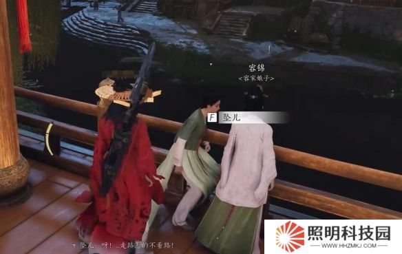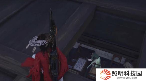 3、來到下圖位置對話【墜兒】,來到房頂從房頂小門進去偷羅盤;