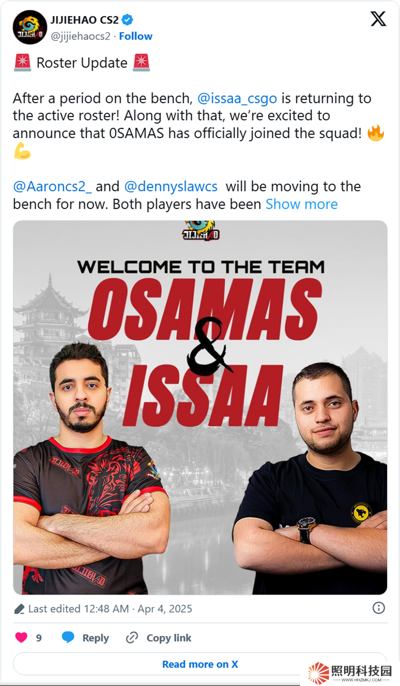 這不是ISSAA第一次離開(kāi)JiJieHao戰(zhàn)隊(duì)的首發(fā)陣容了。這位約旦選手在2024年9月離開(kāi)戰(zhàn)隊(duì),2025年2月被移至替補(bǔ)席,不過(guò)在這兩次之后他都又回歸了。