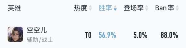 新賽季空空兒上線一周,目前巔峰賽56.9%勝率+93%禁選率,兩項(xiàng)數(shù)據(jù)都是全英雄第一,甚至可以競(jìng)爭(zhēng)王者史上最超標(biāo)的英雄。