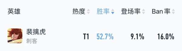 裴擒虎新賽季吃到了急速戰(zhàn)靴加強(qiáng)的紅利,巔峰賽52.7%勝率+25.1%禁選率,成為了中高分段綜合表現(xiàn)最好的T0野王。