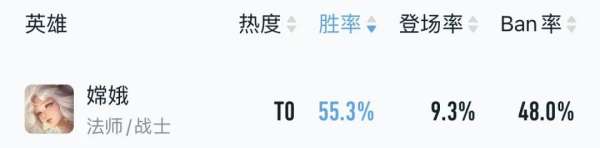 上賽季嫦娥改版后就已經(jīng)完全轉(zhuǎn)型中路,巔峰賽55.3%勝率+57.3%禁選率斷檔領(lǐng)跑中路,本周小幅削弱對(duì)嫦娥的影響并不大。