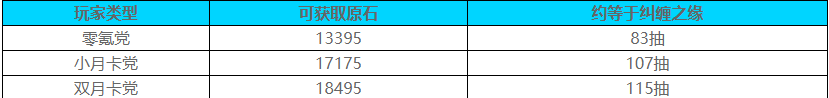 3、小月卡黨與雙月卡黨多出的原石,主要來源于「空月祝福」,每日90原石,長期穩定。