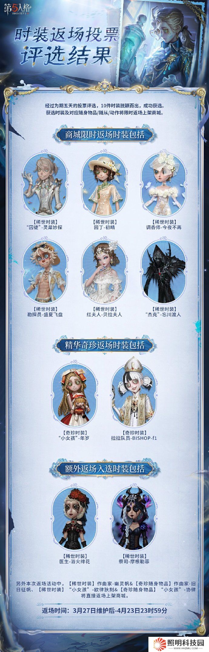 以上就是本站為大家帶來的第五人格皮膚返場投票結果3月解答,大家都了解了嗎?還想要了解更多的內容那就請繼續關注本站吧。