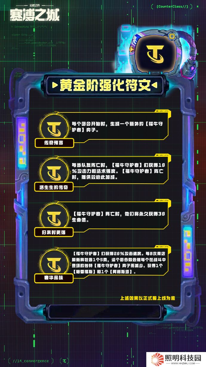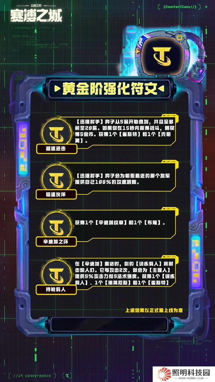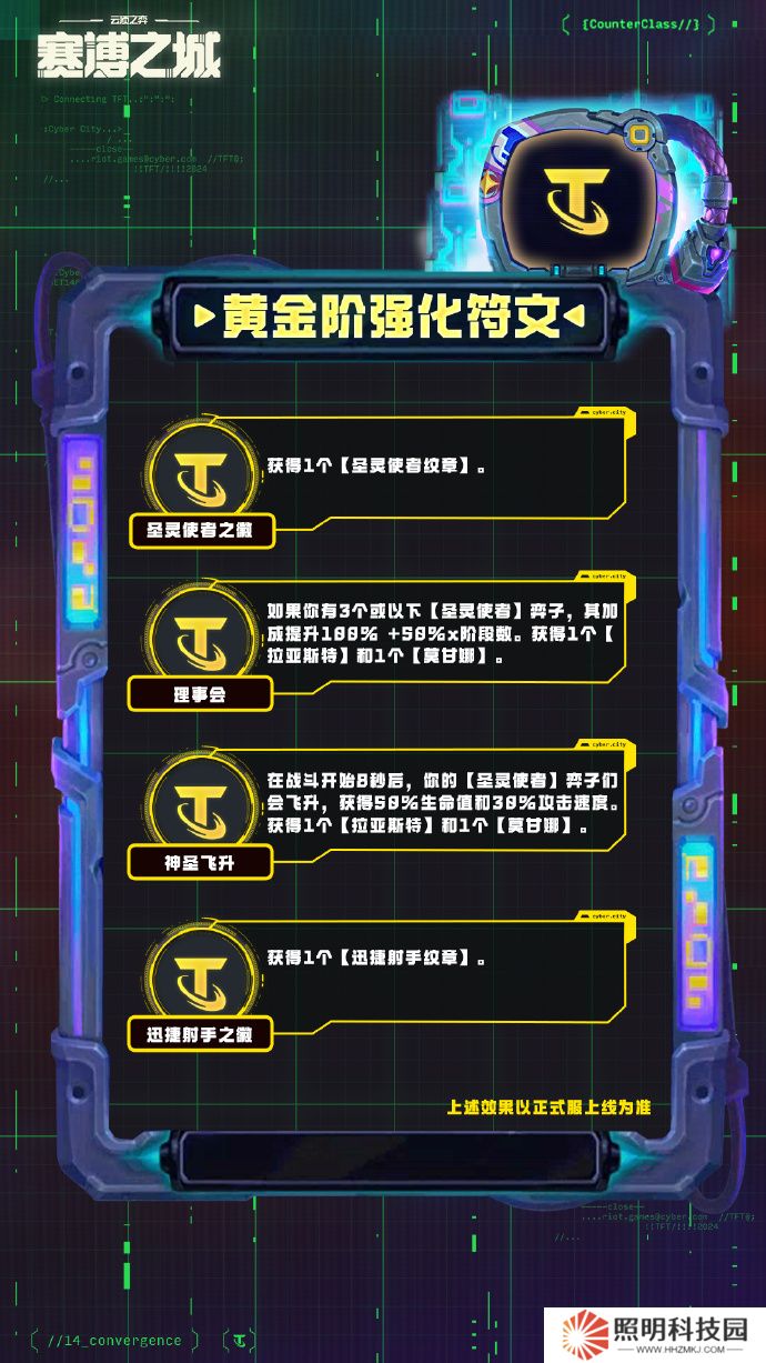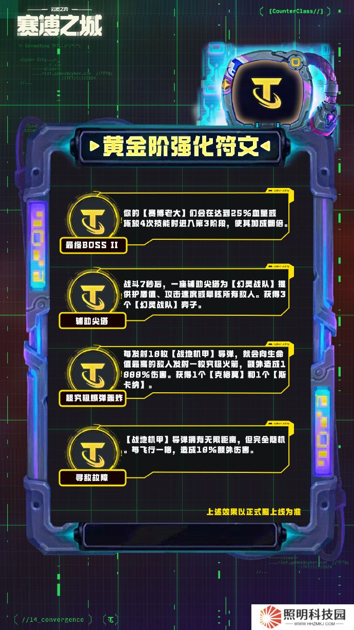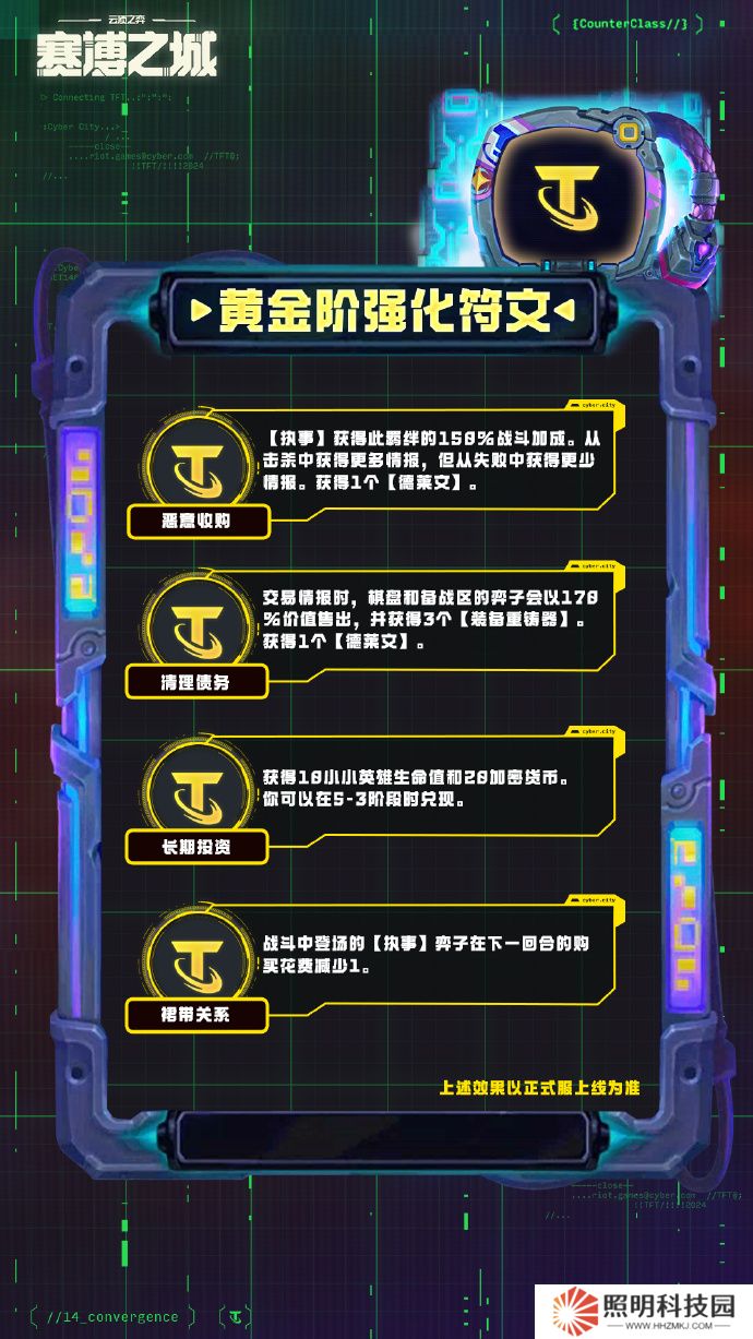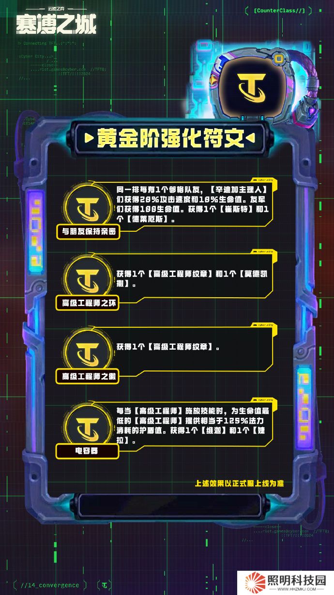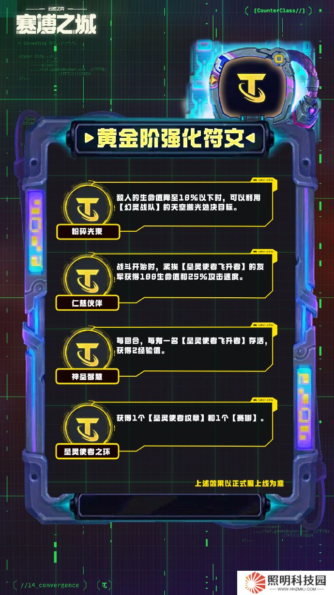 云頂之弈即將迎來S14賽季賽博之城,在這個賽季將會上線全新的黃金階強化符文,那么大家知道黃金階強化符文究竟是怎么樣的呢?下面快跟隨本站小編為大家帶來的云頂之弈S14黃金階強化符文吧。