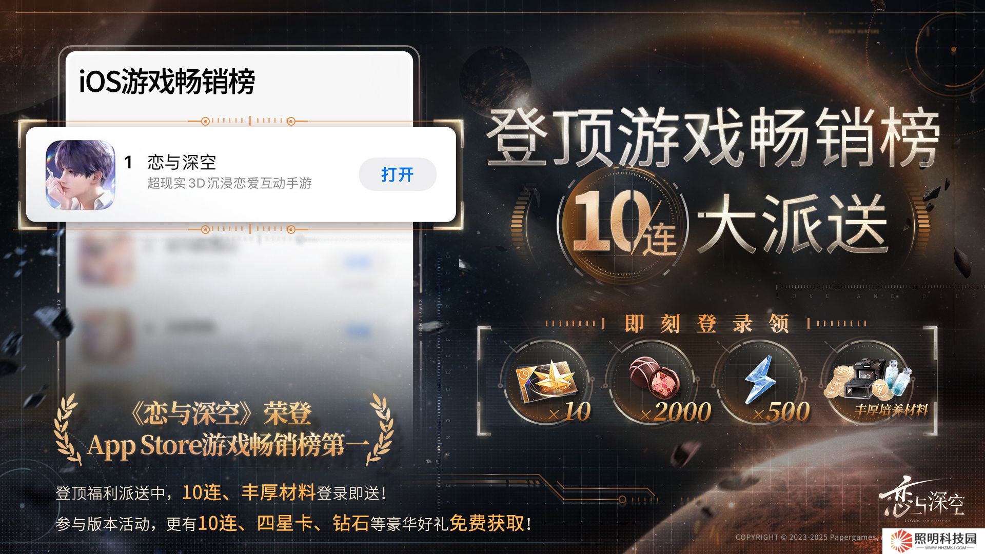 以上就是關于戀與深空ios暢銷榜登頂獎勵是什么的全部內容了,希望能為各位玩家們帶來幫助,想要了解更多游戲攻略及資訊請持續關注本站。