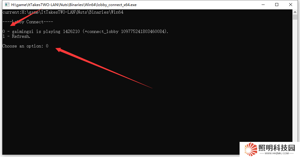 加主機(jī):通過(guò)平臺(tái)打開(kāi)lobby_connect_x64.exe,會(huì)出來(lái)一個(gè)黑框——等玩家建好主機(jī),黑框中輸入對(duì)應(yīng)數(shù)字刷新(Refresh)——找到對(duì)應(yīng)數(shù)字的主機(jī),輸入對(duì)應(yīng)數(shù)字——第一次它會(huì)讓你選擇游戲的exe,你選擇ItTakesTwo.exe打開(kāi),他就會(huì)自動(dòng)進(jìn)游戲自己加入你選擇的主機(jī)——等待主機(jī)開(kāi)始。
