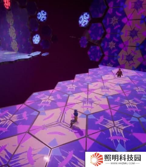 墻壁上的兩條白線,衍生到地面,最后再到另外一個墻壁上連在一起。你的角色-站在格子上面可以把地板變白,主要有兩個位置沒有變成白色,然后你們兩個角色-站上去,就可以觸發成功,具體如圖所示。