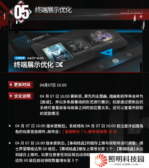 終端展示優化,4月7日更新之后,原本的主題曲、插曲和別傳將會合并到曲譜中,簡單來說就是一些系統方面的優化。