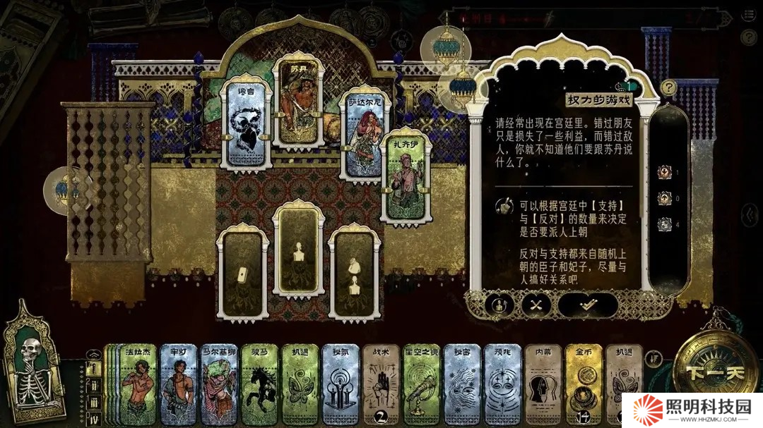 每上朝一周,蘇丹會(huì)消失幾天(即無需上朝),這時(shí)可升級(jí)策略卡。