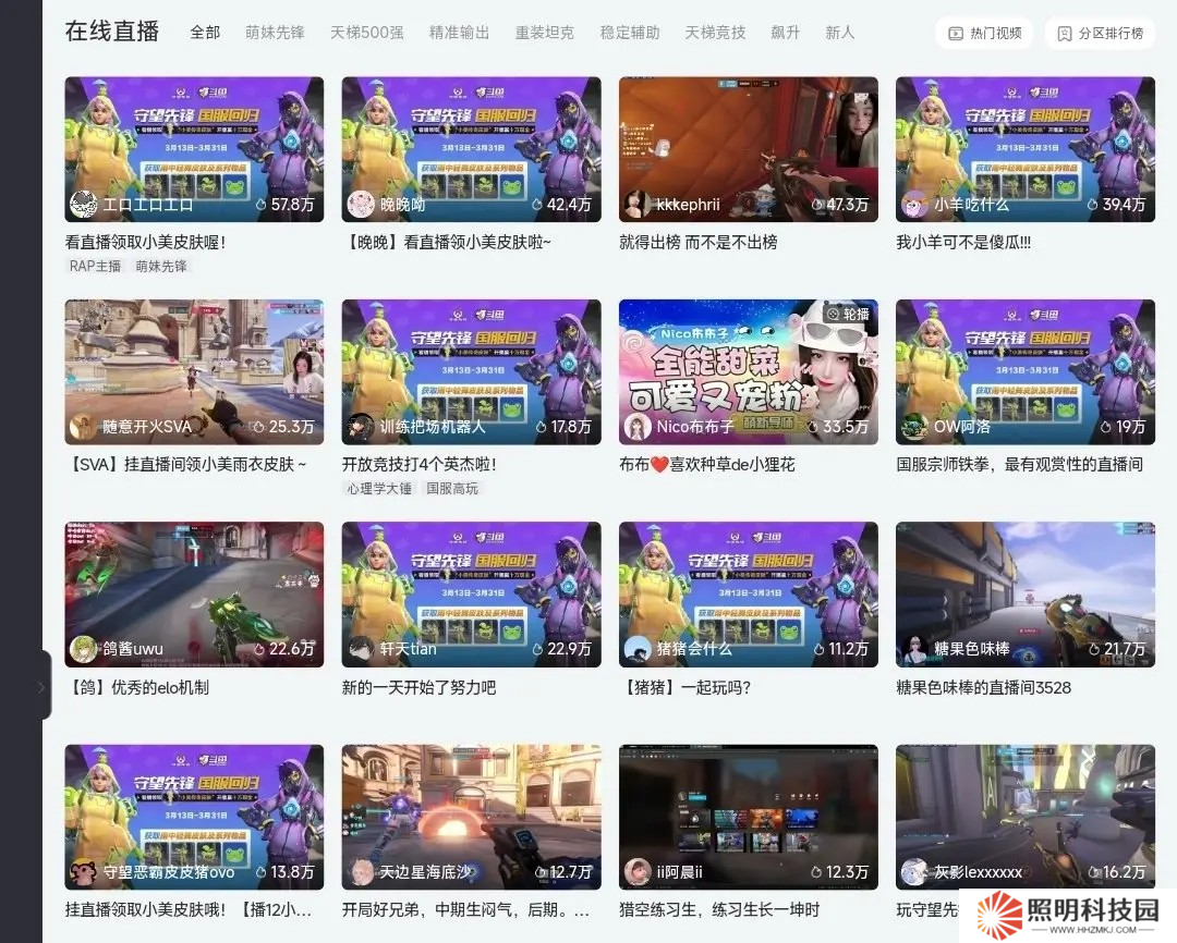 >進入虎牙官網,搜索“守望先鋒”,進入守望先鋒專區。